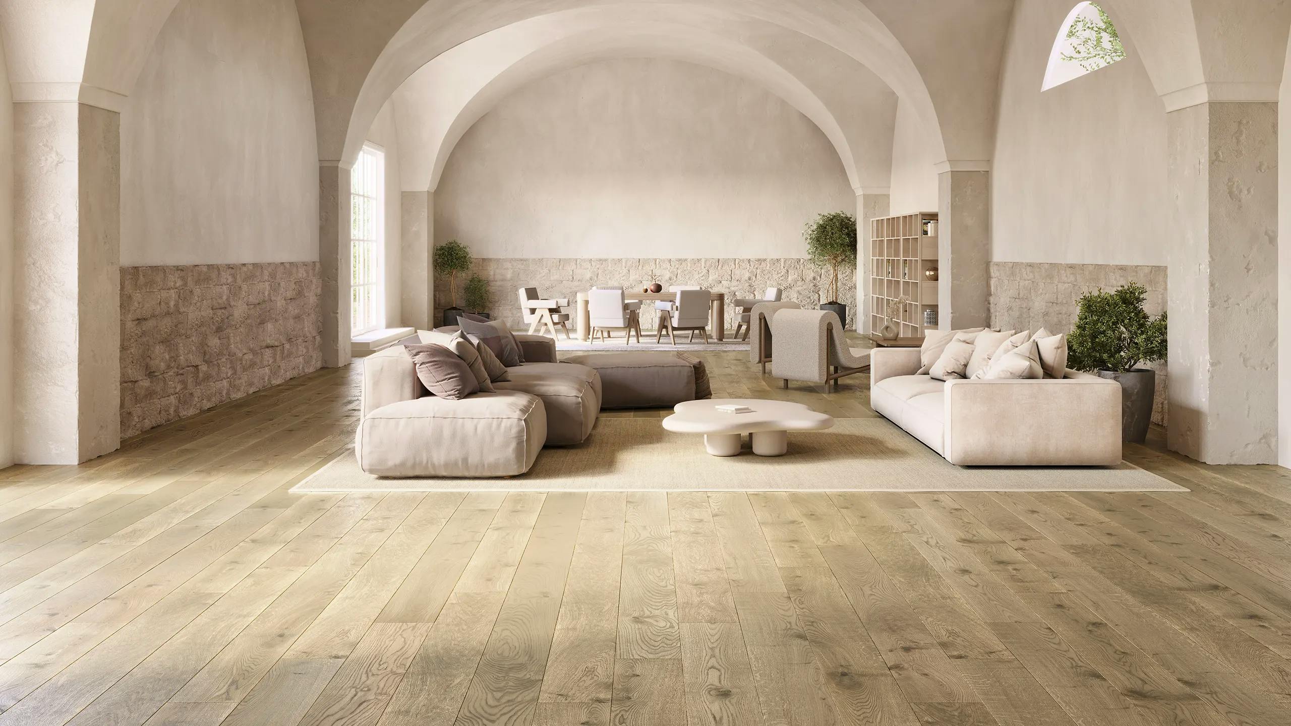 The ancient Greeks saw the realm above the clouds as Aether, a place of bright and pure air. We developed this floor color in search of a beige unclouded and free of surface haze, blending a flow of tones into a subtler, softer shade.