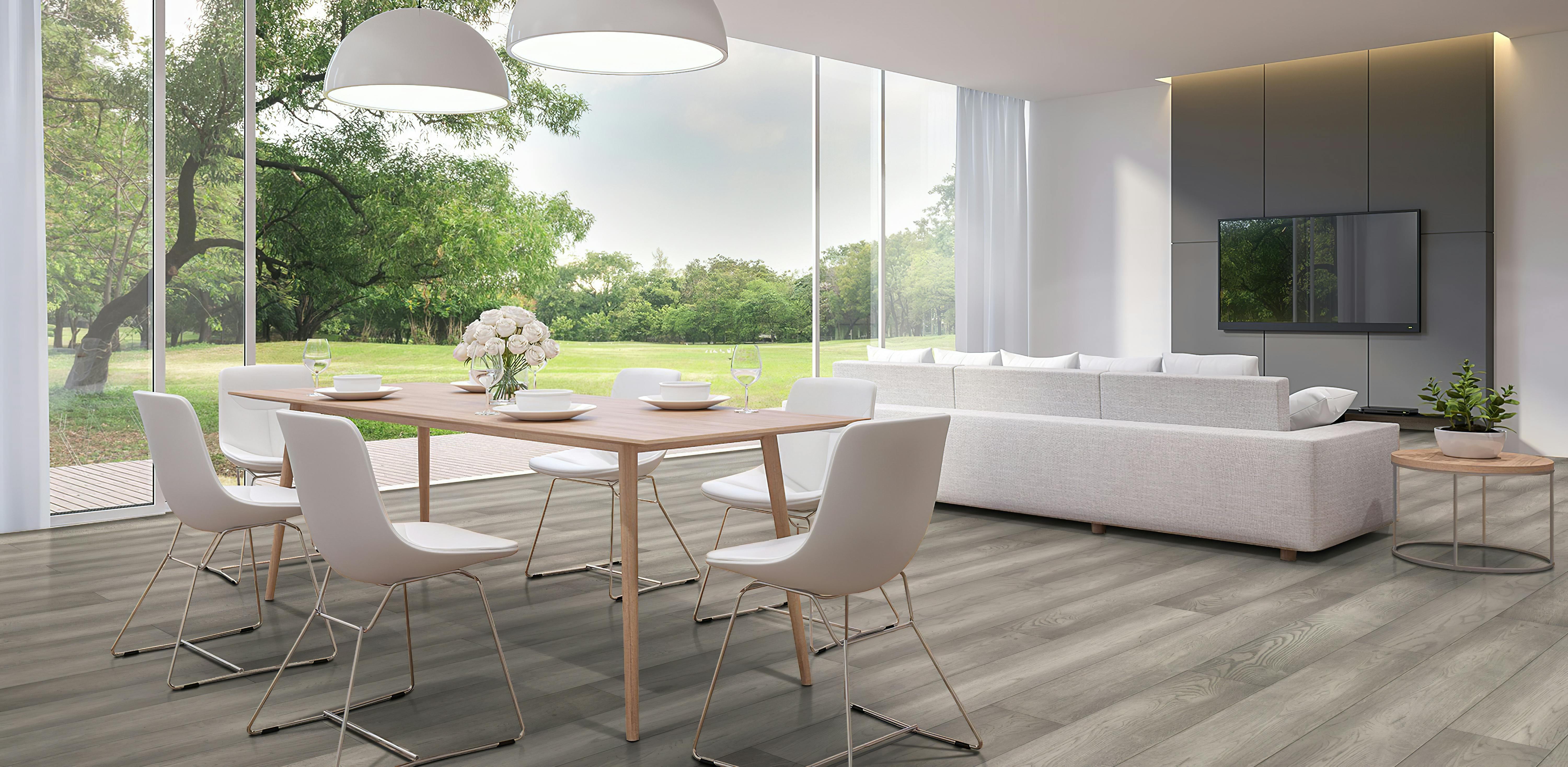 A subtle warm grey washes over a white background, giving the feeling of fog rolling off of the ocean. Depending on the lighting in your environment, the warmer brown tones of the floor may be more visible. The warm tones of Domenico exude a calming feeling in any environment. The Chateau Collection® features flooring that showcases the natural beauty of hardwood. Designed with a vintage aesthetic, these oil-finished floors offer beautiful matte finishes that enhance the grain and character of the wood.