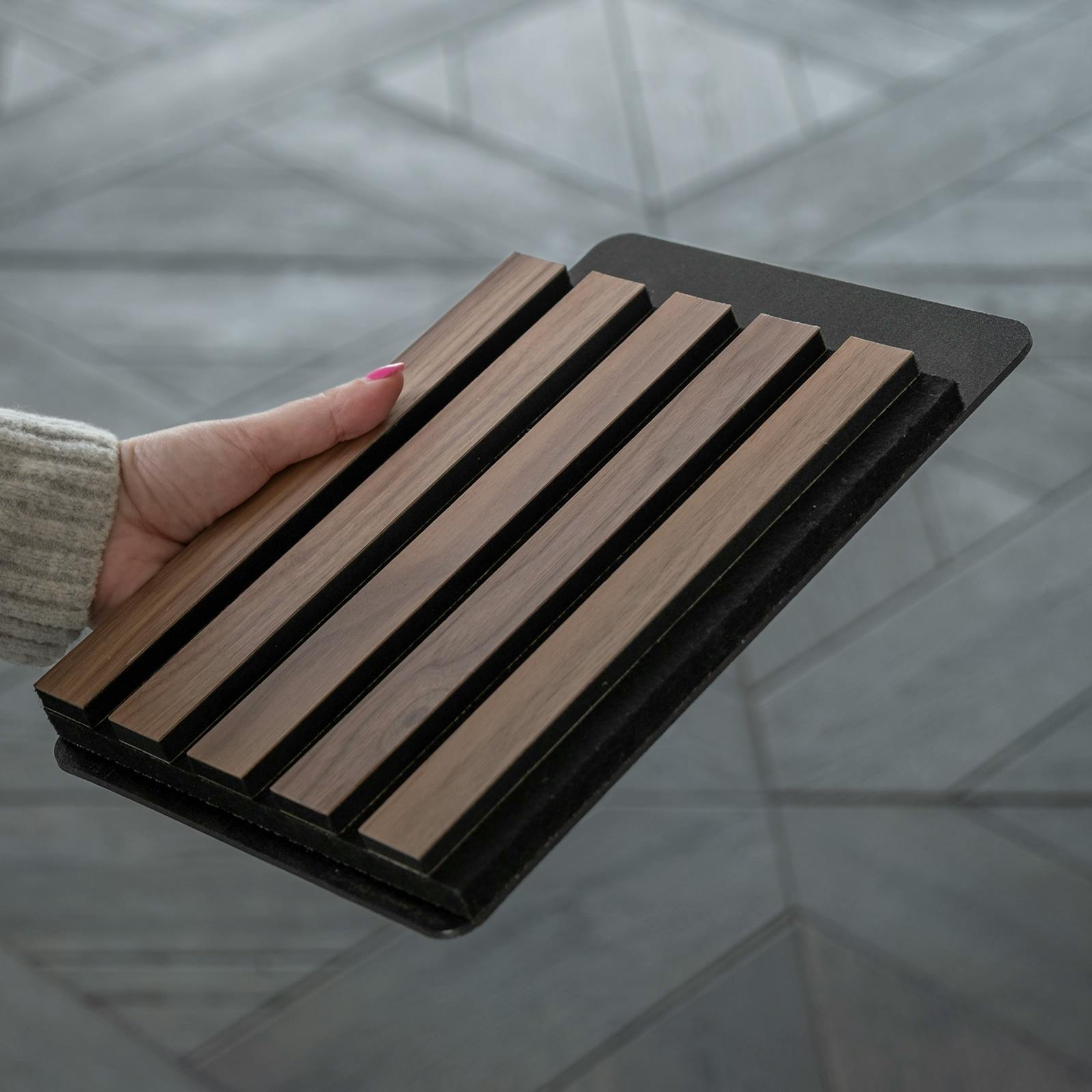 The felt backing, an ode to the acoustics of grand concert halls, insulates space from the sounds of surroundings.