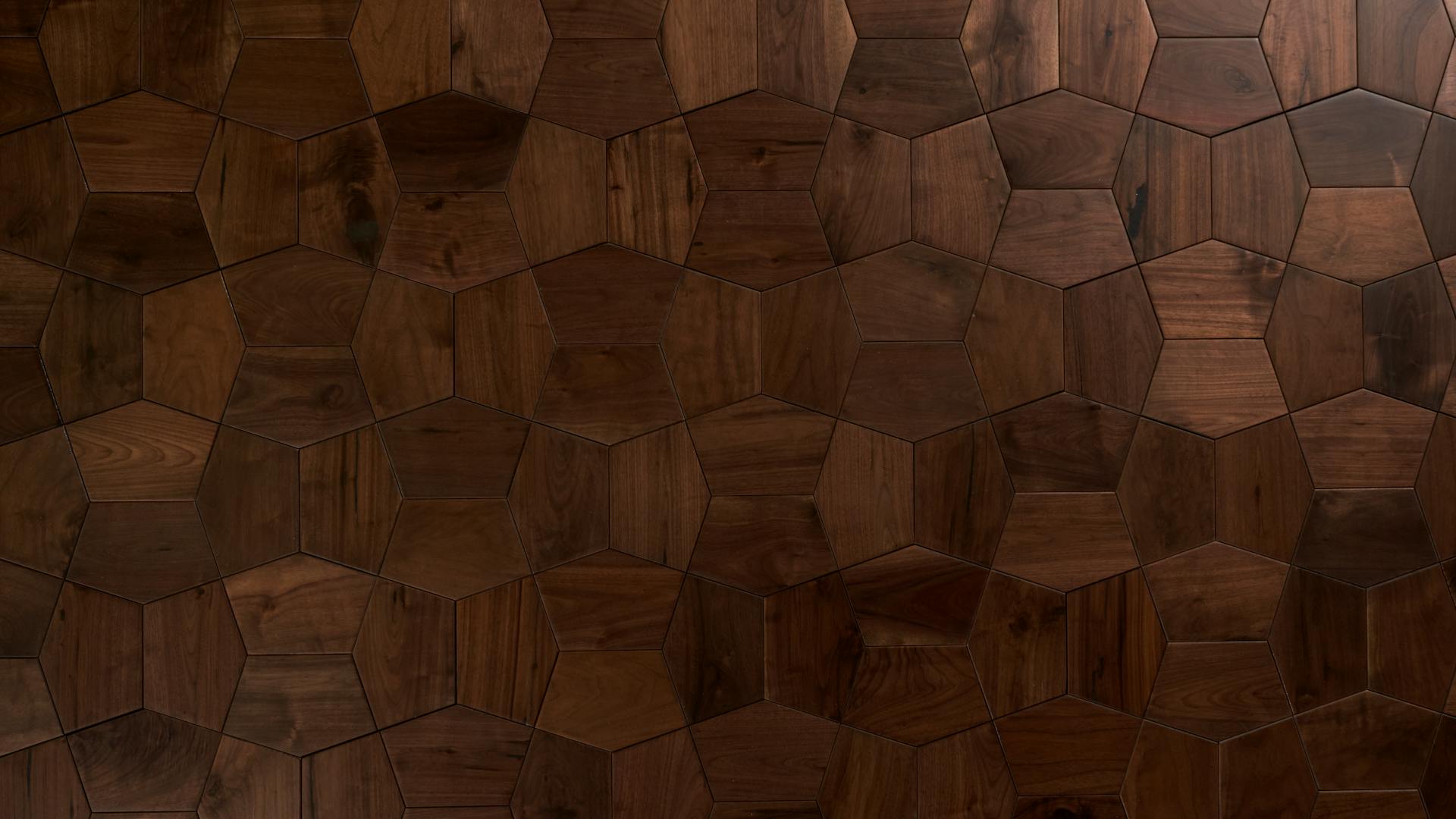 "6" in Japanese, Roku is a linear hexagon pattern formed from three pieces and connected to create a honeycomb tessellation.